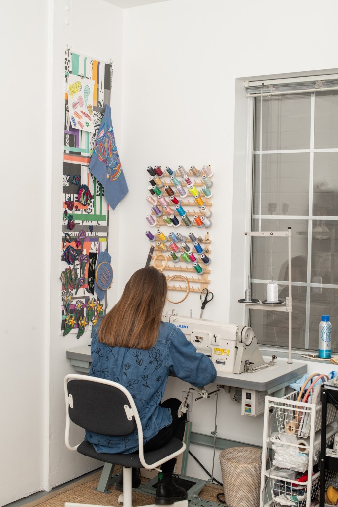 With a focus on often-overlooked techniques such as sewing, printing, and embroidery, Philippa brings a fine art sensibility to every piece. Studio Renshaw centres its creative practice around the use of a hand-guided industrial sewing machine to produce unique embroidered artworks—designed to be worn, collected, and most importantly, to bring joy.